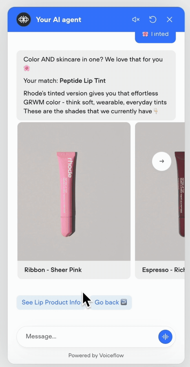 Your skincare journey, elevated through a chat agent that guides you to your perfect glow. Meet Rho, your personal glow guide 💄