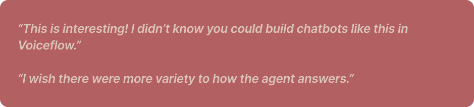 We tested on 3 different users who were not familiar with CUX to gather insights on our chat agent